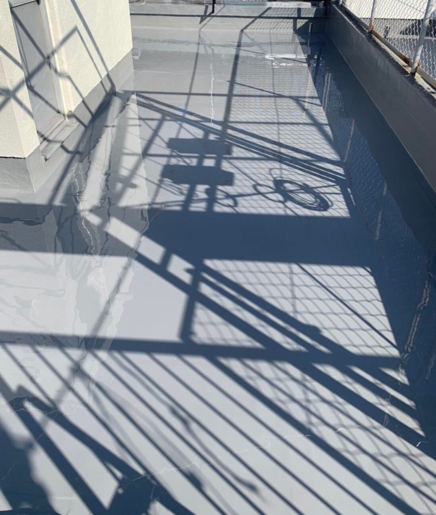 屋上はウレタン防水工事です。陸屋根ともいいます。